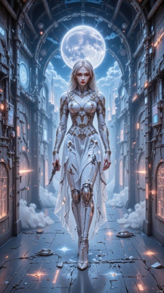 The goddess strolls in the mechanical corridor, and the energy pipes on the walls emit a faint light. Her hlr_dress incorporates mechanical elements, echoing the surrounding environment. Delicate patterns on the skirt appear and disappear faintly, and her high - heeled boots make a clear sound. She walks gracefully, and it seems that she is holding a secret device related to the future in her hand.magnificent, masterpiece, realistic, best quality, highly detailed,profession, creative, glowing, dynamic,UHD,hlr_dress,plns,hlr,cyberpunk night city,BO-AN1ME,