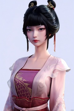 score_9,score_8_up,score_7_up,ZhiGui, 1girl, solo, bangs, simple background, black hair, hair ornament, white background, closed mouth, upper body, blunt bangs, black eyes, lips, chinese clothes, realistic, hanfu