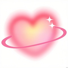 AXYS, A digital illustration featuring a large, heart-shaped object with a gradient of pink and red hues, positioned in the center. The heart has a soft, glowing effect, with a bright, white star on its left side and a smaller, white star on its right side. A thin, pink line curves around the heart, forming a whimsical, circular shape. The background is plain white, and the overall style is simple and minimalistic. The image has a light, airy feel, with a subtle sparkle effect around the stars. The illustration has a romantic and dreamy aesthetic.