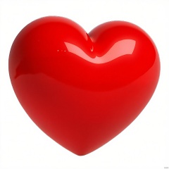 AXYS, A highly polished, glossy red heart with a smooth, reflective surface. The heart is centered in the image, filling most of the frame. The lighting is bright and even, highlighting the heart's shiny texture and creating a sense of depth and realism. The background is plain white, providing a stark contrast to the vibrant red heart. The image is a digital rendering with a focus on realistic shading and highlights, giving it a three-dimensional appearance. The heart is symmetrical and has a slight three-dimensional shape, with a small indentation in the center.