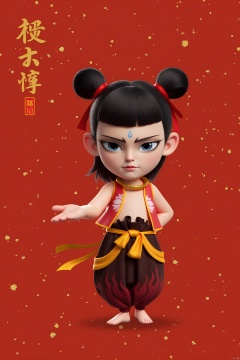 LZNZ,1BOY, 3D Nezha, Nezha, shock, freehand ink painting, spray painting, red, gold foil, flower blue, dawn, silver ash, pearlescent, fused into ethereality, artistic vision , freehand, minimalist, national style, big red