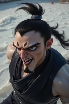 black hair, 1boy, ponytail, male focus, motion blur, topknot