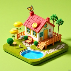 Miniature_photography,mx,3D cartoon style scene,mini-paint-house,butterfly,step,fence,stream,mini-paint-house,Miniature hand-painted lemonade,pool,Microphotography,a wonderful microscopic world