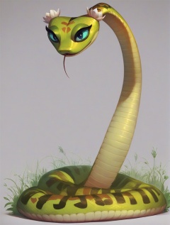 Masterpiece,Best Quality,master viper,snake,grass,full body,feral,solo,perfection detail,extreme detail,solo,green body,simple background,<lora:aki:0.8>,score_9,score_8_up,score_7_up,score_6_up,