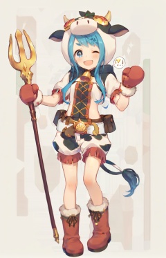 score_9,score_8_up,score_7_up,score_6_up,score_5_up,score_4_up BREAK source_anime,1girl,solo,long hair,looking at viewer,blush,smile,open mouth,blue eyes,gloves,holding,animal ears,blue hair,full body,weapon,short sleeves,boots,one eye closed,horns,shorts,belt,hood,bell,;d,animal print,polearm,animal hood,cow print,mittens,trident,puffy shorts,<lora:野户真阳pony:1>,