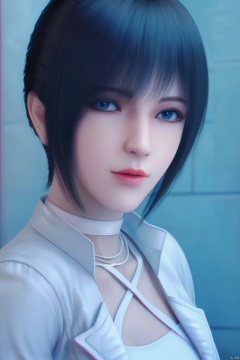 score_9, score_8_up, score_7_up,highly detailed digital,CG,1girl, solo, looking at viewer, short hair, blue eyes, black hair, jacket, upper body, choker, lips, realistic, white choker