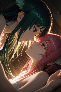 masterpiece,best quality,amazing quality,very aesthetic,absurdres,newest,extreme aesthetic,in the style of fashion photography,light particles,cinematic lighting,Visual impact,sharp focus,Emotionalization,depth of field,dutch angle,scenery,1girl,saya \(saya no uta\),saya no uta,2girls,lucy \(elfen lied\),elfen lied,segmentation,fusion,two girls face to face,