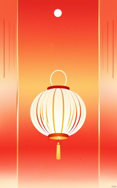YDHB, illustration, flat poster featuring a stylized white lantern with minimalist lines. The background is a soft gradient of reds and golds, exuding a contemporary yet traditional vibe.