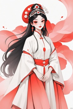 A majestic 8K CG artwork of a single girl dressed in stunning Peking Opera costumes. She stands regally against a vast, dreamlike plain, where the only distraction is a hint of subtle red hue. Her elegant temperament and exquisite facial features are highlighted by masterful makeup. Dramatic headwear adorns her refined visage, as she exudes an air of refined sophistication. The framing is minimalist, with a simple background that lets the subject shine. Traditional Chinese painting techniques evoke a realistic, almost two-dimensional quality, transporting the viewer to a realm of ethereal beauty.