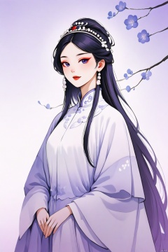 A majestic 8K CG artwork of a single girl dressed in stunning Peking Opera costumes. She stands regally against a vast, dreamlike plain, where the only distraction is a hint of subtle purple hue. Her elegant temperament and exquisite facial features are highlighted by masterful makeup. Dramatic headwear adorns her refined visage, as she exudes an air of refined sophistication. The framing is minimalist, with a simple background that lets the subject shine. Traditional Chinese painting techniques evoke a realistic, almost two-dimensional quality, transporting the viewer to a realm of ethereal beauty.