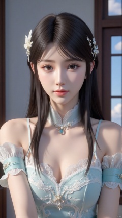 Very detailed face, extremely detailed eyes and face, (vacuum), 8K wallpaper, light leak, beautiful and detailed girl, extremely detailed CGUnity8K wallpaper, an extremely detailed and beautiful, beautiful and detailed eyes, masterpiece, best quality, Real photo level, (frontal shooting panoramic perspective), ( (Full body photo)), dynamic angle, dynamic pose, solo, ancient style silver hairpin with petals, blue sky and white clouds, (C cup), (huge round breasts), slender legs, super good figure, stunning beauty, (whole body in the mirror) , (wearing Lolita nightgown), (light reflects the shadow of the body through the clothes),vacuum,bare and smooth