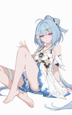 8k,best quality,masterpiece,(ultra-detailed),(high detailed skin),((artist:reoen),(artist:fuzichoco),(artist:atdan),(artist:torino_aqua),year 2024:0.8),[artist:wlop],[artist:ningen_mame],artist:ciloranko,[[artist:rhasta]],artist:tidsean,colorful,<lora:xl-ill-Griseo(Honkai Impact 3)-v1-000010:0.8>,griseo:xiamengruhui\(honkai impact 3\),1girl,solo,long hair,hair ornament,ahoge,blue hair,hair between eyes,purple eyes,smile,bare shoulders,dress,white dress,barefoot,<lora:NOOBAI_Simple Flat Coloring_v2-000027:0.8>,Simple Flat Coloring,sketch,line,simple background,white background,