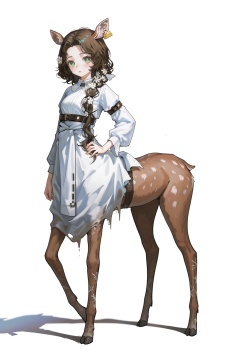8k,best quality,masterpiece,(ultra-detailed),(high detailed skin),safe_pos,masterpiece,absurdres,newest,iumu,shinanoya \(satanicad\),jima,(whitebc:0.75),reoen,(healthyman:0.5),yoshinari you,(sparkling eyes:1.2),by Wlop and Ilya Kuvshinov style,cel-shading with soft gradients,cinematic composition,depth of field,(lens flare:0.7),(light bloom:1.1),(subtle film grain:0.5),pastel color palette,(fkey:0.6),(fuzichoco:0.6),impasto,full body,full shot,standing,looking at viewer,(solo:1.2),simple background,(white background:1.2),hand on own hip,(white background:1.1),<lora:jessica-IL-Tanger-000014:0.8>,jessica \(reverse:1999\),clothes: def white dress,deer-centaur,deer ears,ear tag,half-deer girl,1girl,taur,animal ears,green eyes,brown hair,monster girl,ong hair,long sleeves,A full-body portrait of a young girl,standing gracefully,pastel art style,high-key lighting,shoujo manga influence,hd quality,delicate details,