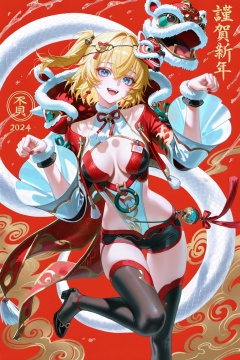 (artist:quasarcake:0.8),extreme aesthetic,(wlop:0.6),(honjou raita,lack,rella,wanke:0.5),masterpiece,best quality,good quality,newest,year 2024,year 2023,very aesthetic,absurdres,Visual impact,A shot with tension,ultra-high resolution,32K UHD,sharp focus,best-quality,masterpiece,Emotionalization,unconventional supreme masterpiece,masterful details,temperate atmosphere,with a high-end texture,in the style of fashion photography,(Visual impact:1.2),Dynamic and visual impact,offcial art,colorful,splash of color,movie perspective,masterpiece,best quality,amazing quality,very aesthetic,absurdres,best quality,newest,A full-body portrait of a young girl,standing gracefully,pastel art style,high-key lighting,shoujo manga influence,hd quality,delicate details,1 girl,looking_at_viewer,smile,open_mouth,bangs,standing,full_body,sash,animal,red_background,paw_pose,snake,white_snake,(happy_new_year),(chinese new year),<lora:cbcnwed-noob-Tanger:0.8>,Fenny,clothes: Fenny Lion dance costumes,3rd clothes,Fenny mask hair ornament,blonde hair,black shorts,black thighhighs,1girl,breasts,short hair,bell,