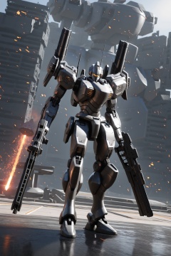masterpiece,best quality,game cg,aritist:wlop,aritist:RyanReos,aritist:zoh,(artist:nianbingzi:0.4),zoh,<lora:jijia-gnoobv-Tanger-000010:0.55>,jijia,3d,CG,armored core \(video game\),mecha,robot,weapon,gun,science fiction,no humans,holding,solo,holding weapon,holding gun,dual wielding,outdoors,looking at viewer,
