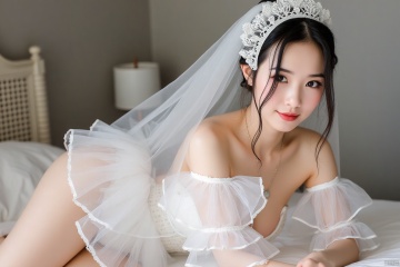 一个新娘,古典少女自然肉色肌肤,浅青丝质薄纱夏衣被溪水完全浸透,半透明布料紧贴玲珑曲线,阳光穿透纱料显现胸部自然起伏与臀部饱满弧度,腰间系带被水流冲开形成动态褶皱,赤足陷入长满耳叶苔的卵石间,脚踝缠绕松脱的浅青纱带,远处沙石小路蜿蜒至褪色竹亭,水面倒影中可见背部湿纱吸附的肩胛骨轮廓,8K真实皮肤肌理(毛孔/绒毛/运动后红晕),布料透光率随水深梯度变化,柳叶卡在卵石缝隙间,芦苇丛挂着晨露未消的蛛网