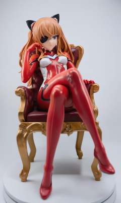 miaokapvc,1girl,souryuu asuka langley,neon genesis evangelion,rebuild of evangelion,lance of longinus,cat hat,plugsuit,pilot suit,red bodysuit,sitting,crossed legs,black eye patch,throne,looking down,from bottom,looking at viewer,outdoors,masterpiece,best quality,very aesthetic,absurdres,