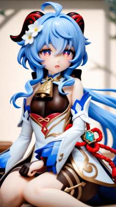 surreal,amazing quality,masterpiece,best quality,awesome,inspiring,cinematic composition,soft shadows,Film grain,shallow depth of field,highly detailed,high budget,cinemascope,epic,color graded cinematic,atmospheric lighting,imperfections,natural,shallow dof,ganyu \(twilight blossom\),ganyu \(genshin impact\),1girl,solo,vision \(genshin impact\),looking at viewer,white background,hair flower,black gloves,dress,alternate costume,bell,blush,sitting,detached sleeves,simple background,bare shoulders,open mouth,white flower,