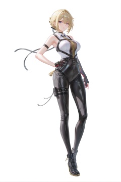 8k,best quality,masterpiece,(ultra-detailed),(high detailed skin),((artist:reoen),(artist:fuzichoco),(artist:atdan),(artist:torino_aqua),year 2024:0.8)1girl,[artist:wlop],[artist:ningen_mame],artist:ciloranko,[[artist:rhasta]],artist:tidsean,colorful,full body,full shot,standing,looking at viewer,(solo:1.2),simple background,(white background:1.2),hand on own hip,(white background:1.1),<lora:Evelyn-ill-Tanger-000014:0.8>,Evelyn \(zenless zone zero\),clothes: def Evelyn clothes,no jacket,1girl,gloves,blonde hair,necktie,short hair,black pants,black footwear,
