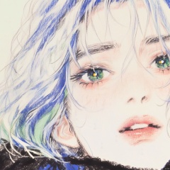 with a focus on the character's facial features and hair. The use of colors and shading adds depth and dimension to the image