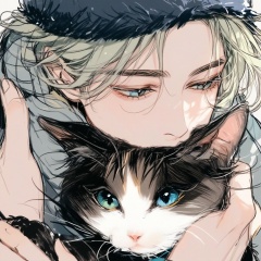 and the person appears to be gently holding or petting the cat. The overall style of the illustration is soft and detailed