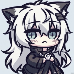chibi,1girl,lappland \(arknights\),arknights,animal ears,long hair,wolf ears,hair ornament,scar across eye,hairclip,bangs,scar on face,grey eyes,white hair,hair between eyes,grey hair,breasts,very long hair,,,
