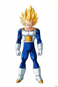 solo, blonde hair, gloves, 1boy, full body, male focus, boots, white gloves, armor, cosplay, parody, white footwear, spiked hair, super saiyan, saiyan armor, super saiyan 1, vegeta