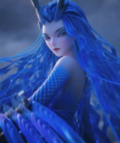 aorun, a girl is standing ,a close-up shot of a woman's face is adorned with a blue dragon costume. The woman's eyes are adorned with blue eyeshadow and a pair of black feathers on her head. Her hair is cascading down her back,((very awa)),solo,highly detailed,(best quality),((masterpiece)),looking_at_viewer,1girl,Shot with a macro lens (f/2.8, 50mm) and a Canon EOSR5,raw photo, snapchat photo, DSLR photo, crisp photo.,cinematic scene,