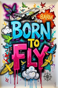 Generate a vibrant and rebellious street graffiti piece centered around the bold slogan "BORN TO FLY". The overall aesthetic is a high - energy explosion of colors and textures, capturing the essence of freedom and aspiration.
