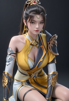 (score_9:1.1),(perfect_anatomy:1.1),upper_body,blurry background,depth of field,(looking_at_viewer:1.1),<lora:YQponyjiqianfanV4-000005:0.8>,q1528437228,solo,1girl,black_hair,hair_ornament,jewelry,earrings,dress,ponytail,long_hair,breasts,chinese_clothes,crescent,forehead_mark,armor,clothing_cutout,facial_mark,boots,brown_hair,realistic,brown_eyes,lips,bare_shoulders,cleavage,cleavage_cutout,knee_boots,asymmetrical_sleeves,yellow_dress,white_dress,hair_bun,detached_sleeves,shoulder_armor,thigh_strap,crescent_earrings,asymmetrical_clothes,gloves,single_hair_bun,elbow_gloves,sash,black_footwear,(simple background,pure black background,black background:1.3),fair_skin,white_skin,shiny_skin,Ivory_skin,perfect_anatomy BREAK perfect_anatomy,(score_9:1.1),cinematic lighting,volumetric lighting,professional lighting,fair_skin,white_skin,shiny_skin,Ivory_skin,perfect_anatomy,