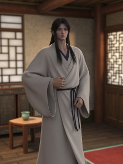jingjiu,3D animation of a male,traditional Chinese attire,indoors,
