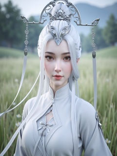 mmgjianma,3D animation of a female,outdoors,white hair,