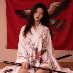 adding a dramatic and cultural atmosphere to the scene. The overall composition suggests a blend of traditional Japanese aesthetics with a modern artistic approach.