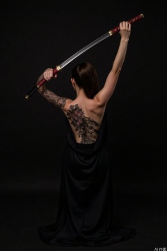 and is prominently displayed. The person is holding a traditional Japanese sword