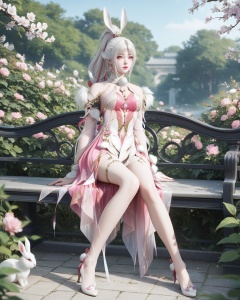 <lora:wy_hutao_xw_XL5.0:0.8>,1girl,solo,high heels,ponytail,dress,animal ears,rabbit ears,white hair,pink eyes,pink dress,hair ornament,long hair,outdoors,gaden,sitting,flower,, score_9,score_8_up,score_7_up,score_6_up,score_5_up,score_4_up,