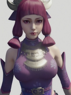 score_9,<lora:SF_ChiMeng2_Pony_Realism-000004:0.7>,1girl,solo,purple clothes,detached sleeves,bangs,pink hair,purple eyes,belt,large breasts,hair ornament,standing,makeup,upper body, fair_skin,white_skin,Ivory_skin,looking at viewer,white background,simple background,