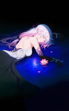 professional,masterpiece,best quality,newest,absurdres,highres,high resolution,best quality,ultra-detailed,high-definition,4k,8k,sharp focus,clear,crisp edges,smooth,vibrant colors,dynamic range,depth of field,safe,8k,best quality,masterpiece,(ultra-detailed),(high detailed skin),((artist:reoen),(artist:fuzichoco),(artist:atdan),(artist:torino_aqua),year 2024:0.8),[artist:wlop],[artist:ningen_mame],artist:ciloranko,[[artist:rhasta]],artist:tidsean,colorful,<lora:illustrious_Simple Flat Coloring_v2-000028:0.75>,Simple Flat Coloring,sketch,line,Agm,<lora:xl-ill-castorice(honkai_star rail)_v1-000010:0.8>,castorice\(honkai:star rail\),1girl,pointy ears,long hair,closed eyes,solo,gloves,breasts,bare shoulders,hair ornament,dress,single glove,lying,pink hair,white hair,very long hair,black gloves,medium breasts,closed mouth,flower,(dark,chiaroscuro,hight-contrast:1.6),darkness,