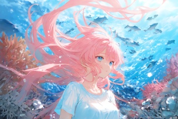 line art,ba,transparent,1girl,underwater,shirt,Coral reef,pink mist,pink hair,upper body,fantasy art,flowers,long hair flowing,HD +,8K,best quality,masterpiece,highly detailed,studio lighting,ultra-fine painting,sharp focus,physics-based rendering,extreme detail description,professional,masterpiece,best quality,exquisite,beautiful,