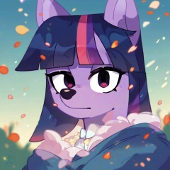 safe_pos, score_9, score_8_up, score_7_up, score_6_up, score_5_up, score_4_up, source_furry, hi res, blurred background, particles, solo, Twilight Sparkle, looking at viewer, closed mouth, Bluey style