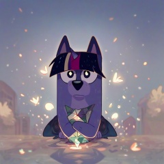 safe_pos, score_9, score_8_up, score_7_up, score_6_up, score_5_up, score_4_up, source_furry, hi res, blurred background, particles, solo, Twilight Sparkle, looking at viewer, closed mouth, Bluey style