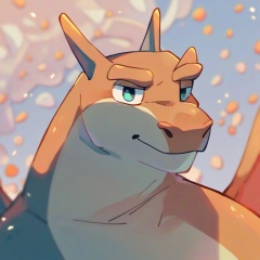 safe_pos, score_9, score_8_up, score_7_up, score_6_up, score_5_up, score_4_up, source_furry, hi res, blurred background, particles, solo, Charizard, looking at viewer, closed mouth, Bluey style