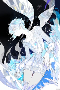 best_quality,masterpiece,(yoneyama mai:0.5),(WANKE:0.5),(noyu (noyu23386566):0.5),Antarcticite \(houseki no kuni\),solo,cute painting style,white hair,sparkly white eyes,short hair,dark background,(bare neck),pale skin,flat chest,white sweater dress,scarf,long sleeves,intricate embroidery,white gems,winter,glacier,shards,luminescence,limited palette,neon,glowing outline,floating in the air,sparkling,vivid colors reflects,light of particles,vibrant,white theme,colorful,dynamic angle,volumetric lighting,dark,intricate details,8k,wallpaper,professional illustration