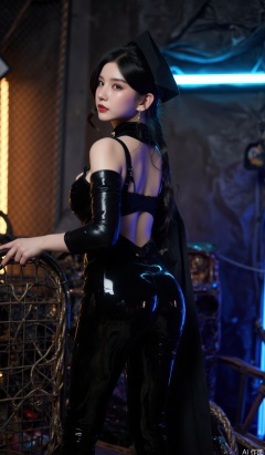 1 Girl, Tits, Latex, Solo, Hat, Brunette,