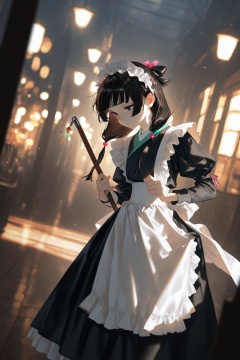 masterpiece,best quality,amazing quality,very aesthetic,absurdres,newest,extreme aesthetic,in the style of fashion photography,light particles,cinematic lighting,Visual impact,sharp focus,Emotionalization,depth of field,dutch angle,scenery,(dino_(dinoartforame):0.5),(yoneyama mai:0.5),(Yomu:0.3),(quasarcake:0.4),(wlop:0.3),1girl,solo,maomao \\(kusuriya no hitorigoto\\),maid,