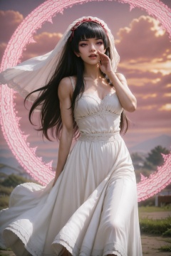 realistic photography,detailed,official wallpaper,.,.,.,1girl,.,<lora:ME:0.9>,art,makeup,feet out of frame,rory mercury,(muscular female:0.9),wind,wedding dress,bridal veil,grass,sunset shimmer \(eg\),cloud,magic circle,ojou-sama pose,, very awa, masterpiece, best quality, highres, absurdres,