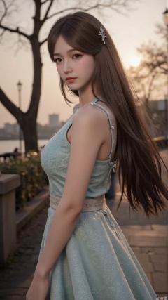 a asian woman, sexy long hair, charming and seductive temperament, distant close-up, golden ratio, movie texture, minimalism, high-end feeling, strong contrast between cold and warm, outdoor scenes,