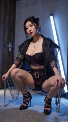 high-waisted shorts, (latex texture:1.4), gradient transparency stockings,