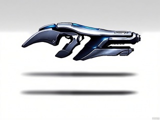 QXL, Digital artwork of a futuristic, high-tech handgun with a sleek, metallic design. The gun features a silver and black color scheme with blue accents. The grip is ergonomic with a textured black handle. The weapon has a slide and a magazine well. The background is a gradient of grey to white, giving a sense of depth. The gun is positioned horizontally, showing the side view. The image is clean and detailed, with a focus on the weapon's design and functionality.