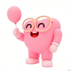 QQYS,A digital illustration of a cute,cartoonish pink heart character with a joyful expression. The heart has large,round eyes with black pupils,and a wide,smiling mouth. It is wearing large,round glasses and pink pants with white shoes. The character is holding a pink heart-shaped balloon in its right hand. The background is plain white. The style is simple and playful,with a clean,polished look. The character's design is reminiscent of a friendly,animated mascot.,