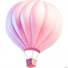 QQYS,A digital illustration of a hot air balloon in a soft,pastel pink color. The balloon has a smooth,shiny texture with gentle,wavy lines that give it a realistic yet stylized appearance. The basket at the bottom is also pink,with a simple,geometric pattern. The balloon is floating against a white background,giving it a clean,minimalist look. The style is whimsical and playful,with a gentle,warm color palette. The balloon appears to be in mid-air,with no visible ground or sky.,